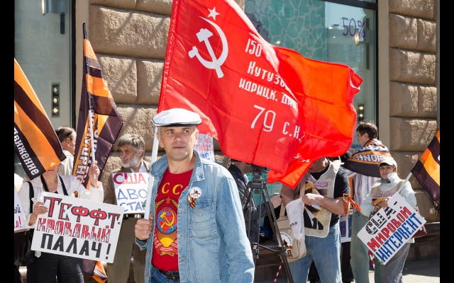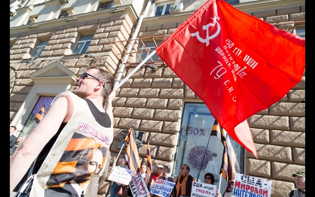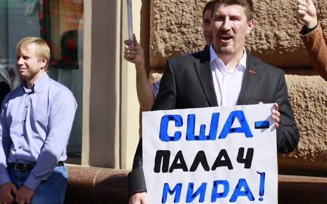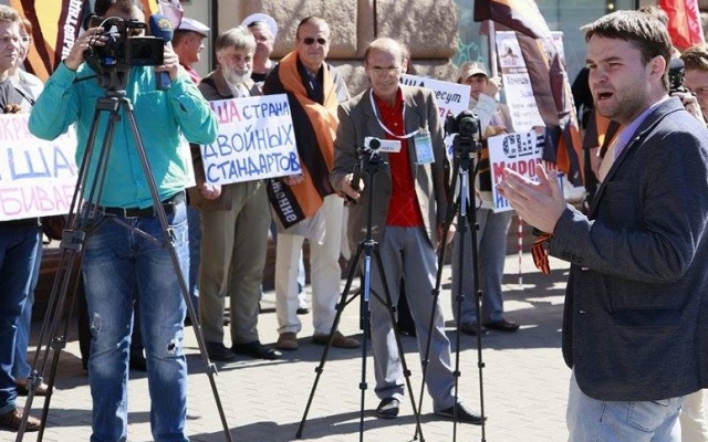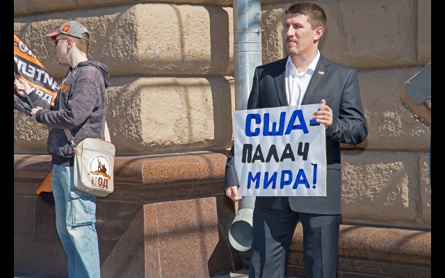 Участники массового пикета протестовали против вмешательства США в дела суверенных стран, геноцида русских на Украине, бомбардировок Сирии, поддержки ИГИЛ.