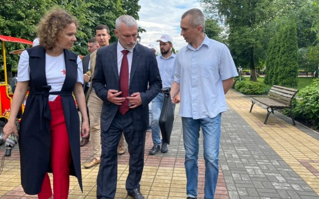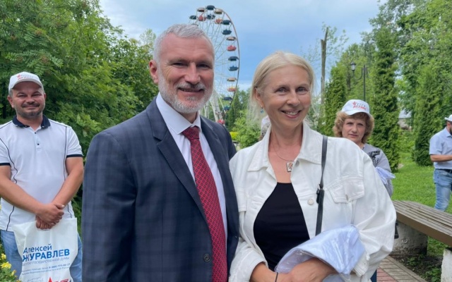 В городском парке Алексей Журавлев поздравил жителей с Днем России, пообщался по поводу имеющихся проблем: "Как говорят сами люди, чиновники превращают город в поселок городского типа. Вот, к примеру, на улице Ломоносова сделали дорогу, но не доработали: получилось так, что она выше, чем дома. При осадках вся грязь стекает во дворы. Люди уже устали обращаться во все возможные инстанции, результатов нет".