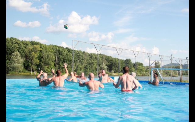 По завершении торжественных мероприятий и показательных выступлений, ветераны ВДВ провели командные соревнования по водному волейболу.